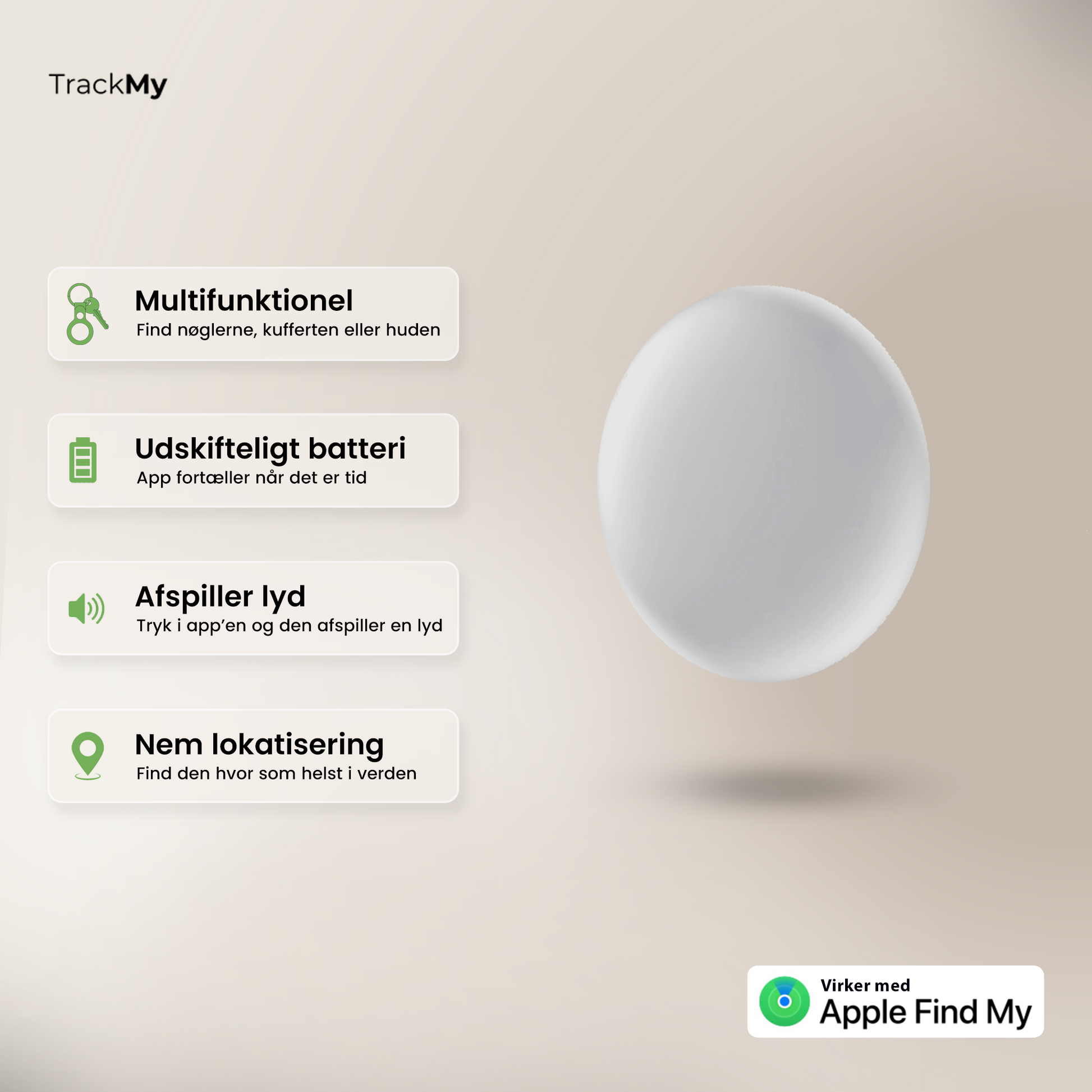 - Virker med Apple Find My - Integreret med Apples netværk